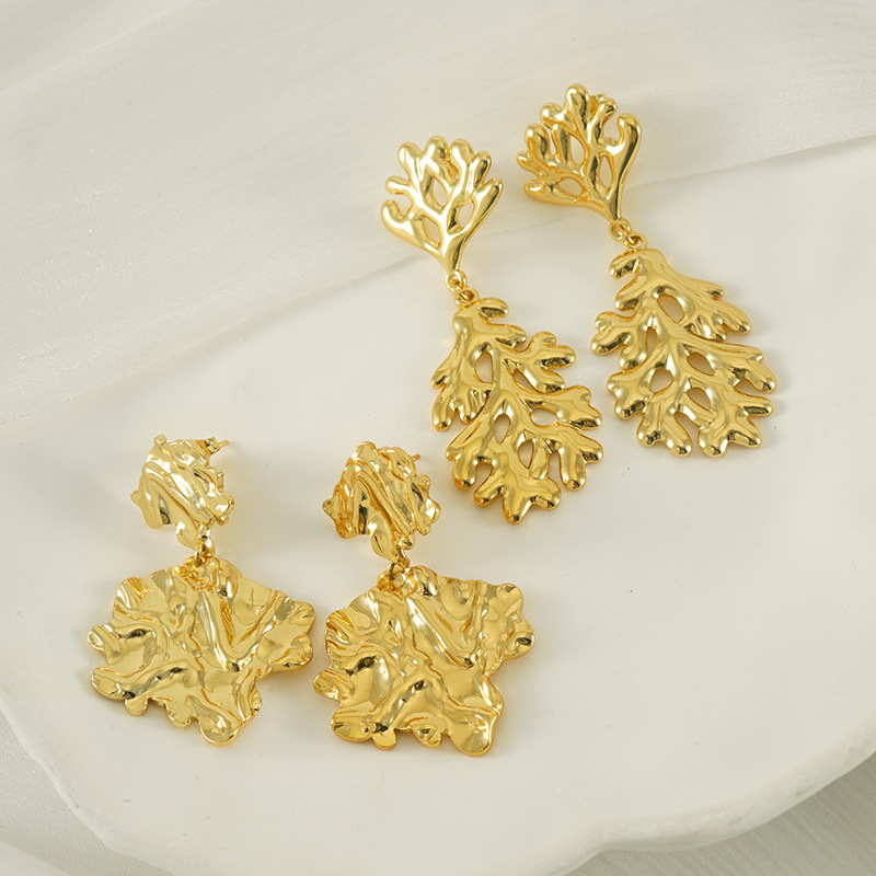 不规则熔岩耳环,304不锈钢,18K真金