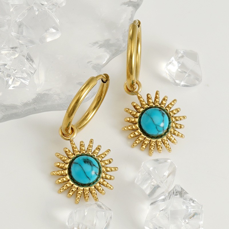 欧美跨境不锈钢新款蓝松石耳环钛钢设计简约小众复古耳环,304不锈钢,18K真金 材质种类:不锈钢 | 商品编号:09562ZE472G