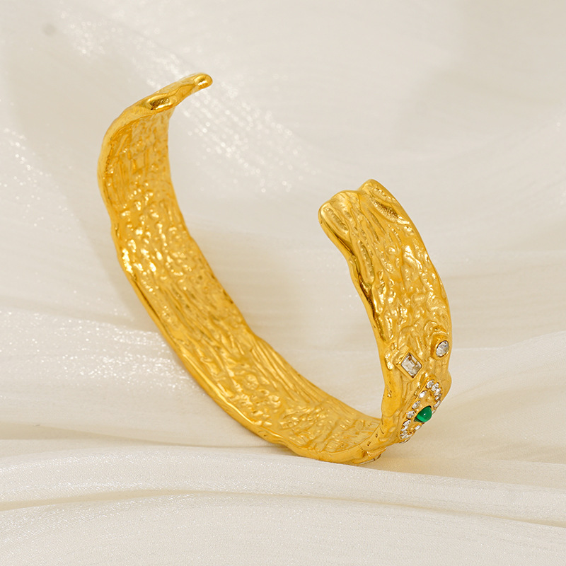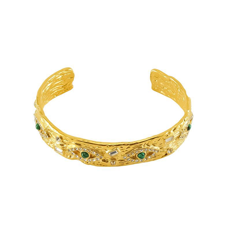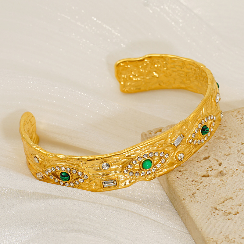 孔雀石恶魔之眼开口手镯,304不锈钢,18K真金 材质种类:不锈钢 | 商品编号:09562ZB1041