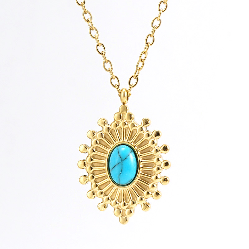跨境不锈钢镶蓝松石18K项链女外贸钛钢简约钛钢眼睛饰品吊坠现货,304不锈钢,18K真金
