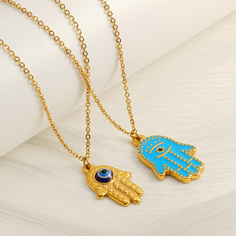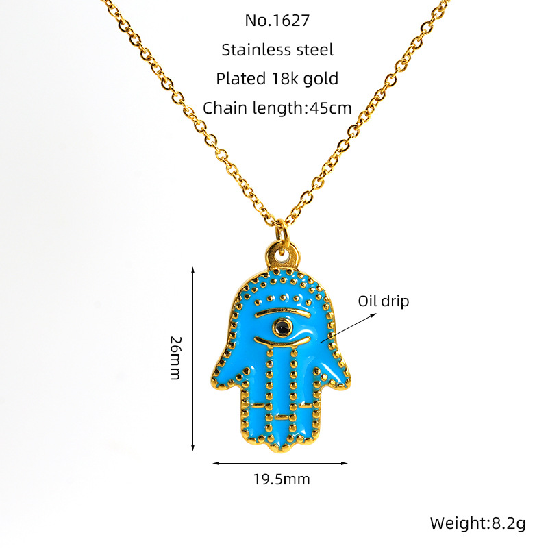 蓝色眼睛手掌项链,304不锈钢,18K真金