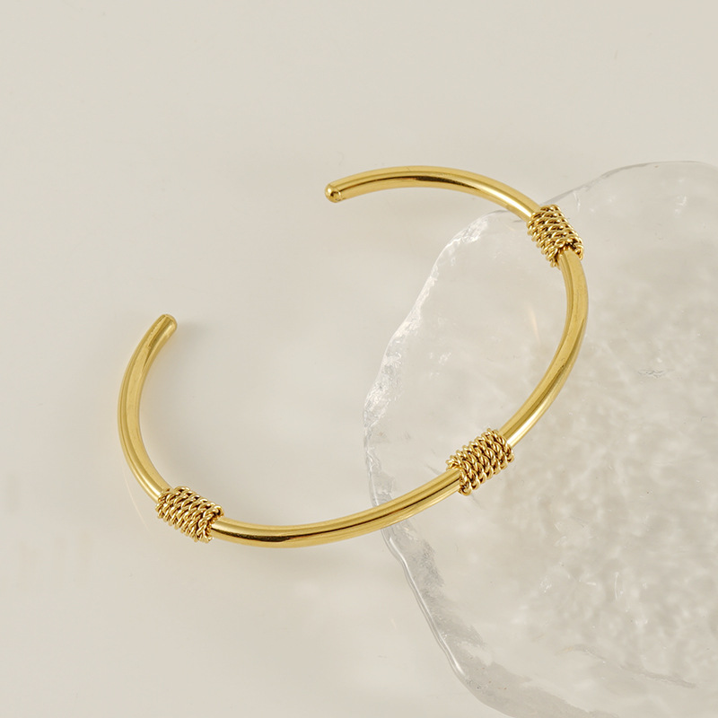 欧美风复古钛钢开口手镯女款气质个性18K镀金C形手环潮流手饰,304不锈钢,18K真金 材质种类:不锈钢 | 商品编号:09562ZB669G