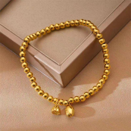 别针链Good luck方牌脚链,304不锈钢,18K真金