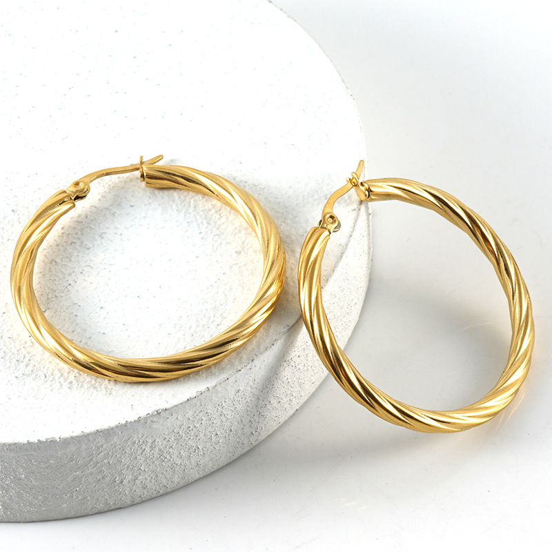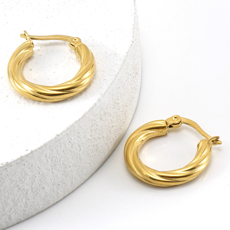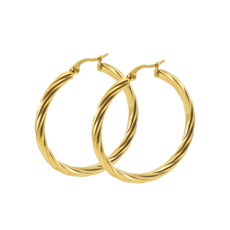 条纹耳环,304不锈钢,18K真金 线径:3.5mm 外径:20mm 材质种类:不锈钢 | 商品编号:09562ZE150G