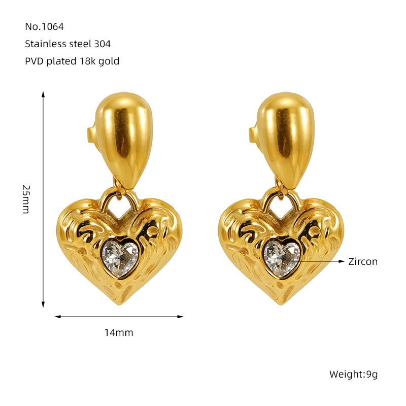 爱心耳环,304不锈钢,18K真金 材质种类:不锈钢 | 商品编号:09562ZE1064G