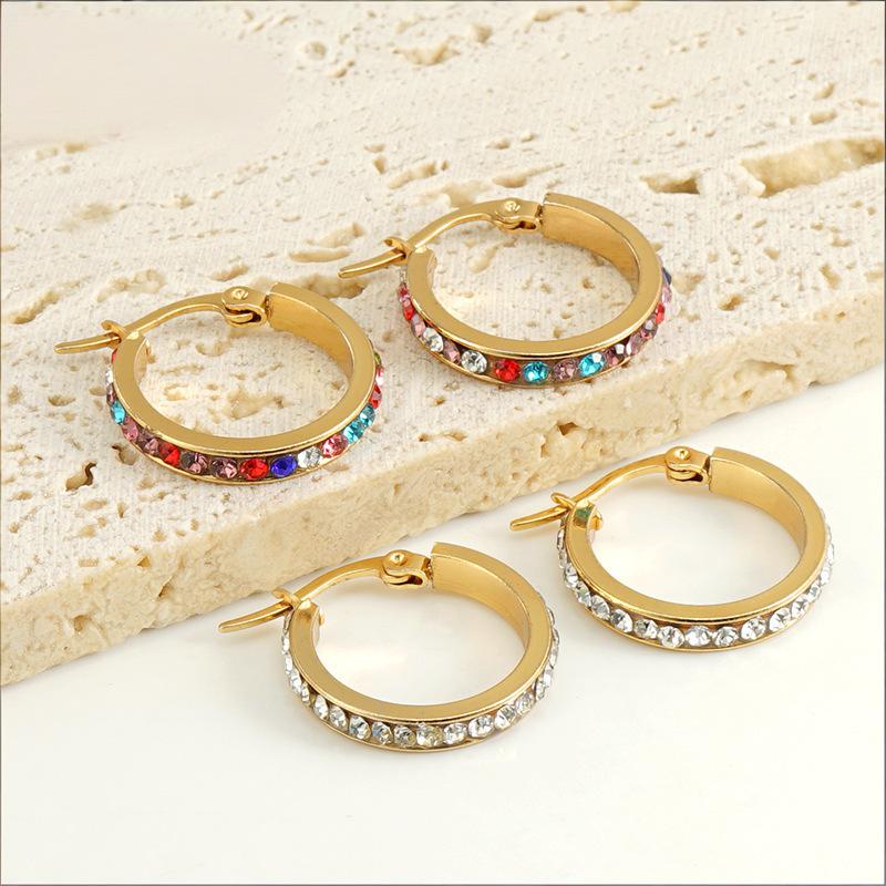 耳环,304不锈钢,18K真金 水钻-国产石:白钻