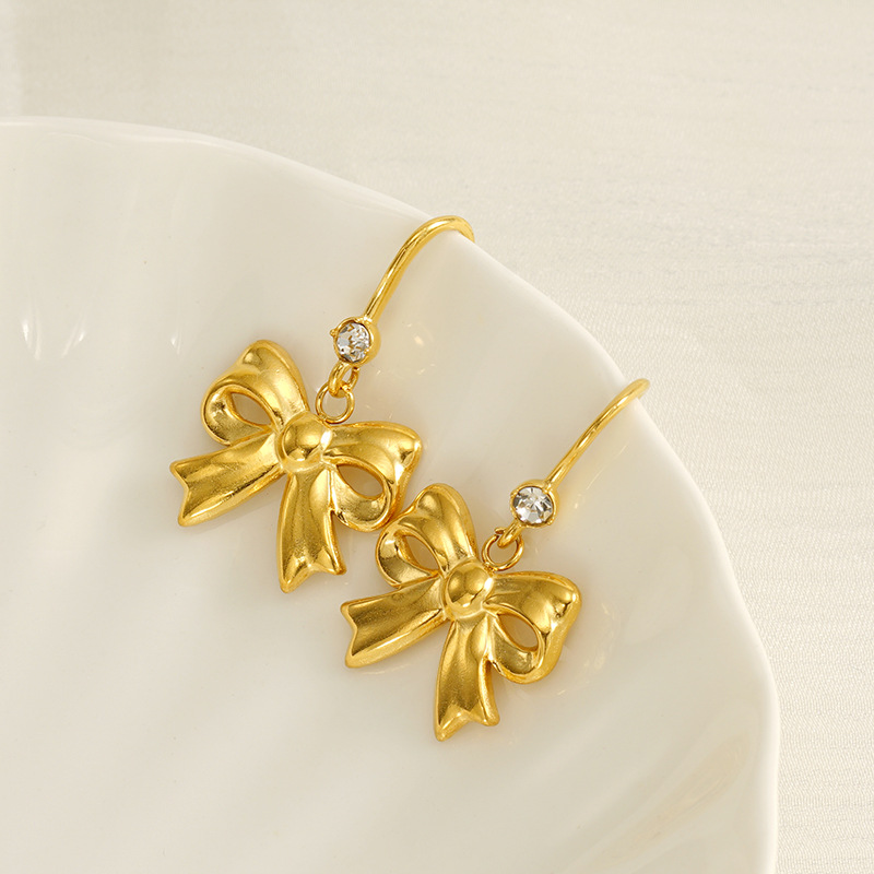 蝴蝶结耳环,304不锈钢,18K真金 材质种类:不锈钢 | 商品编号:09562ZE1588G