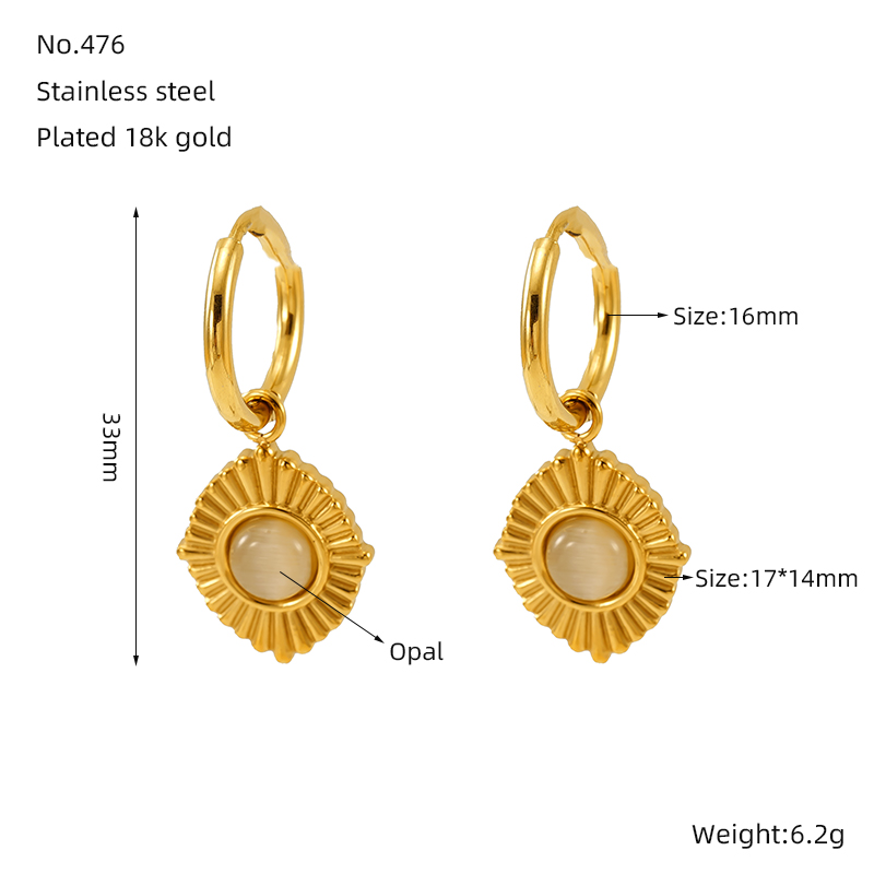 欧美INS风18K不锈钢猫眼石耳环小众钛钢耳饰复古耳环饰品现货批发,304不锈钢,18K真金 材质种类:不锈钢 | 商品编号:09562ZE476G 尺寸: 长度33mmx猫眼石长17mmx猫眼石宽14mm
