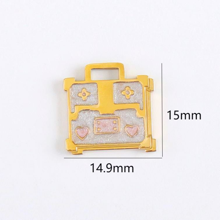 包包吊坠,304不锈钢,18K真金+红色滴胶
