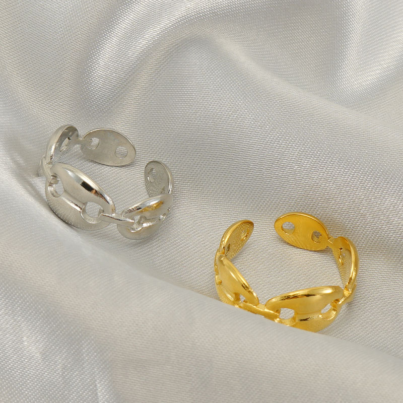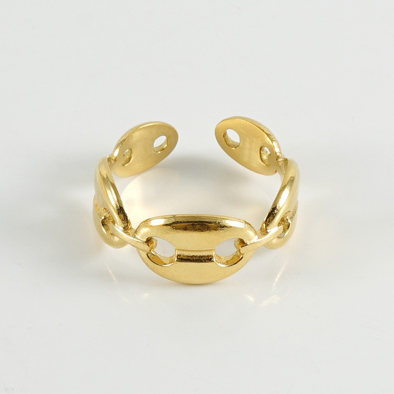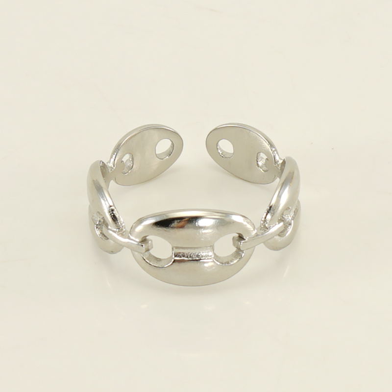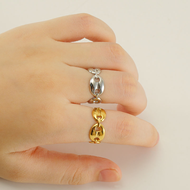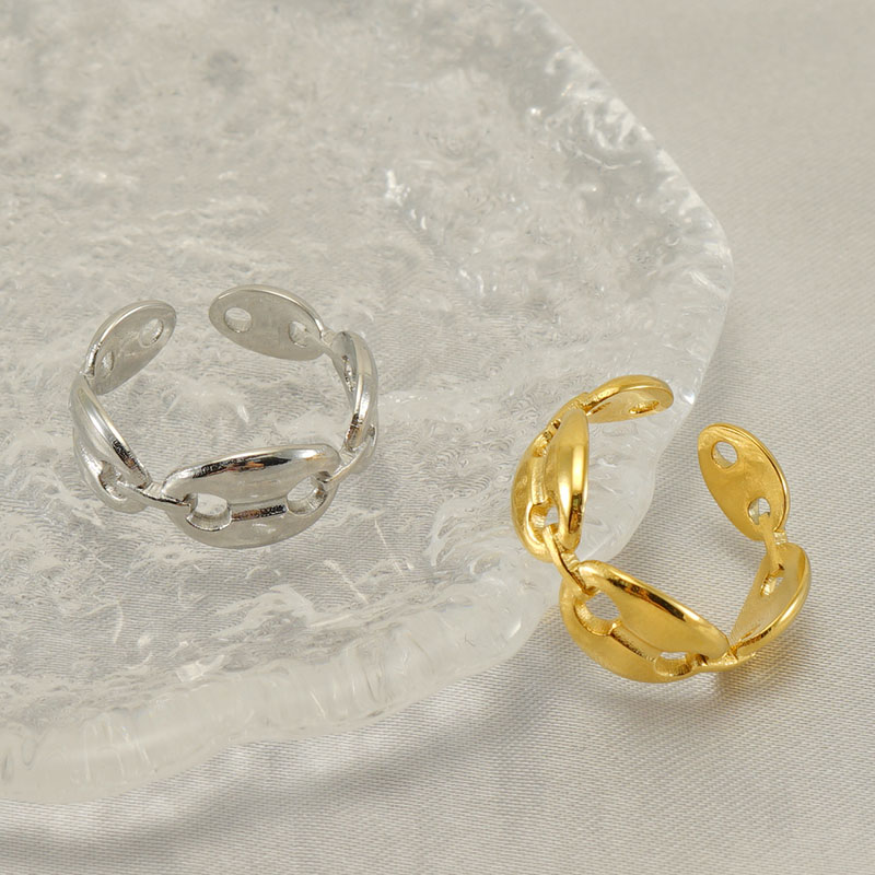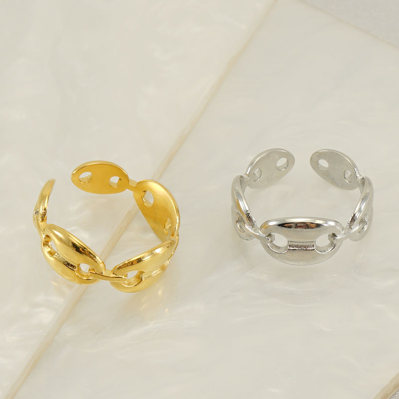 不锈钢猪鼻子18K金开口戒指,304不锈钢,钢色
