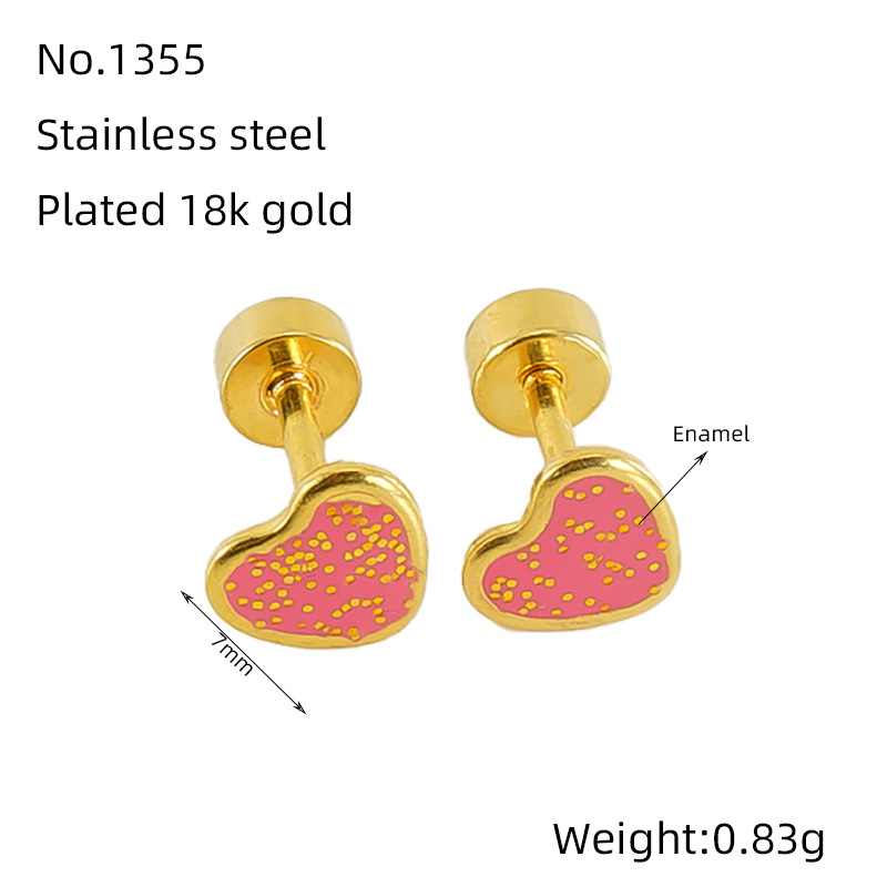 爱心耳钉,304不锈钢,18K真金+白色滴胶