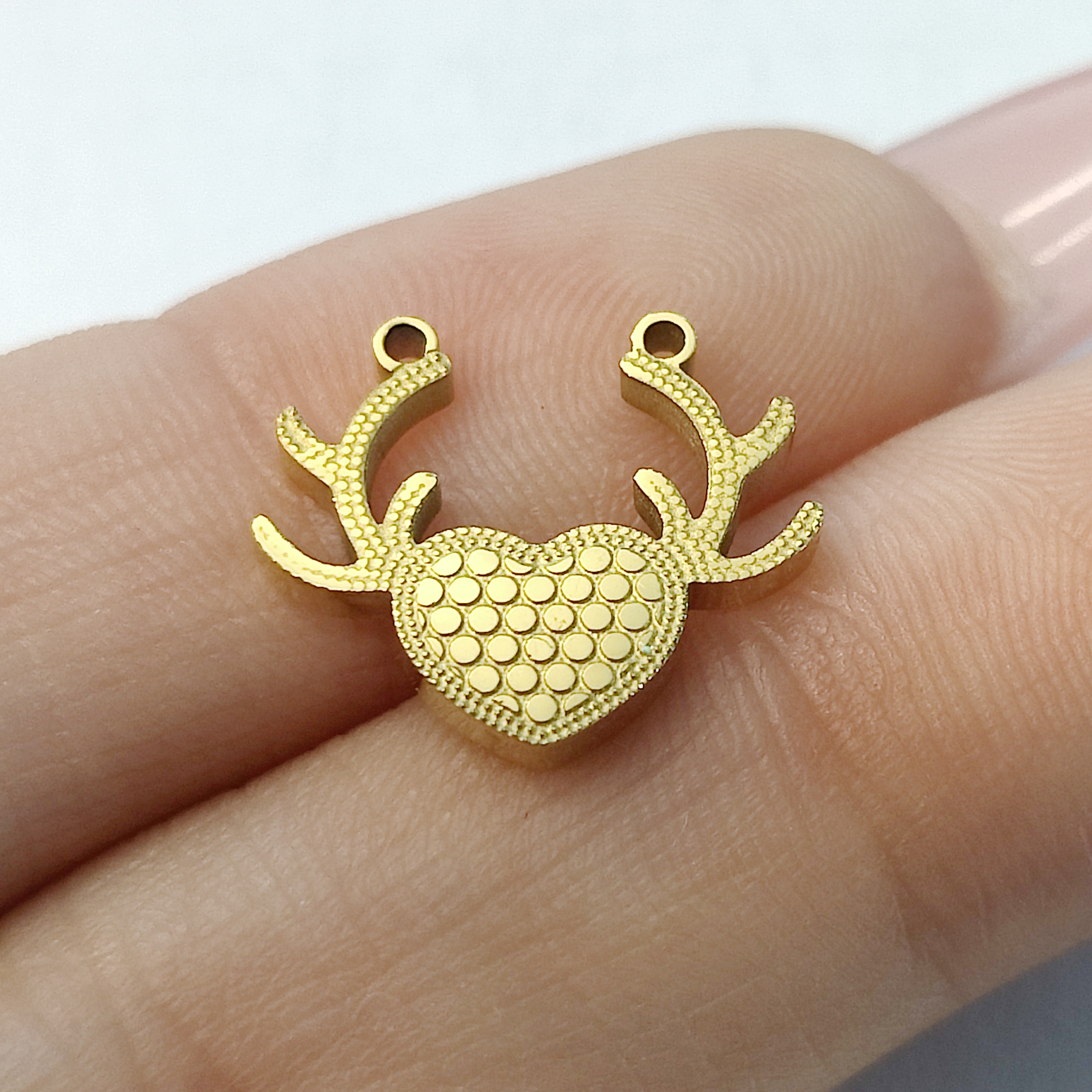 鹿角心形吊坠,304不锈钢,18K真金