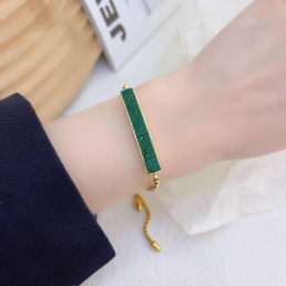 泥巴钻绿钻抽拉手链,304不锈钢,18 K真金