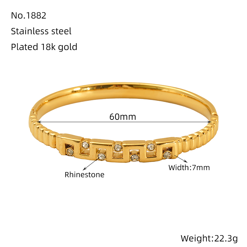 跨境欧美爆款镀18k金不掉色钛钢手镯不锈钢镶锆石卡扣手镯,304不锈钢,18K真金 材质种类:不锈钢 | 商品编号:09562ZB1882G