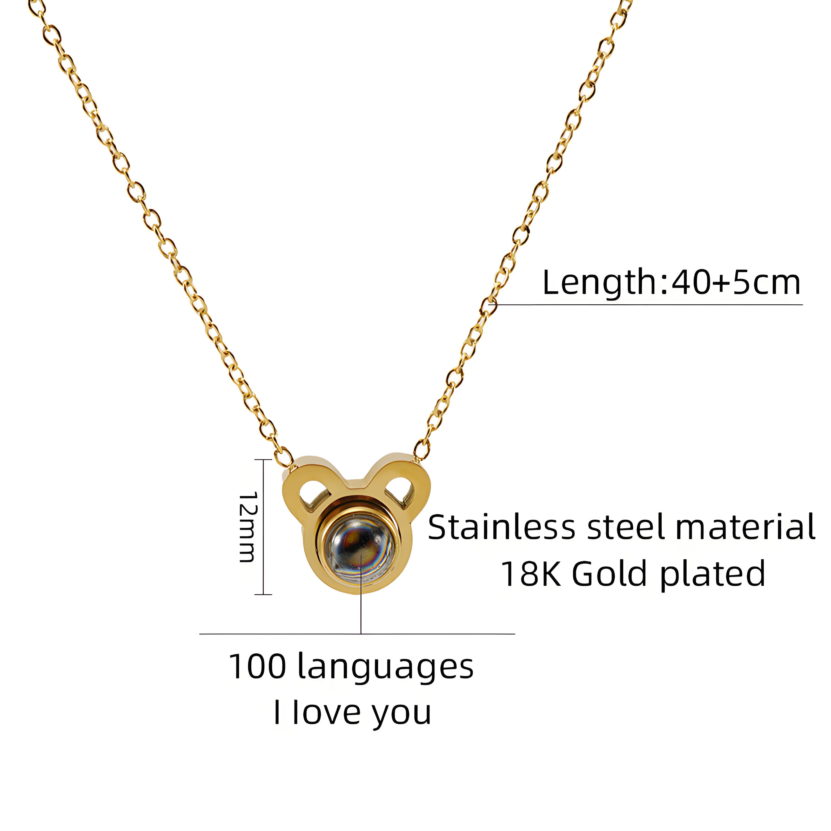 鼠头投影项链,304不锈钢,18K真金