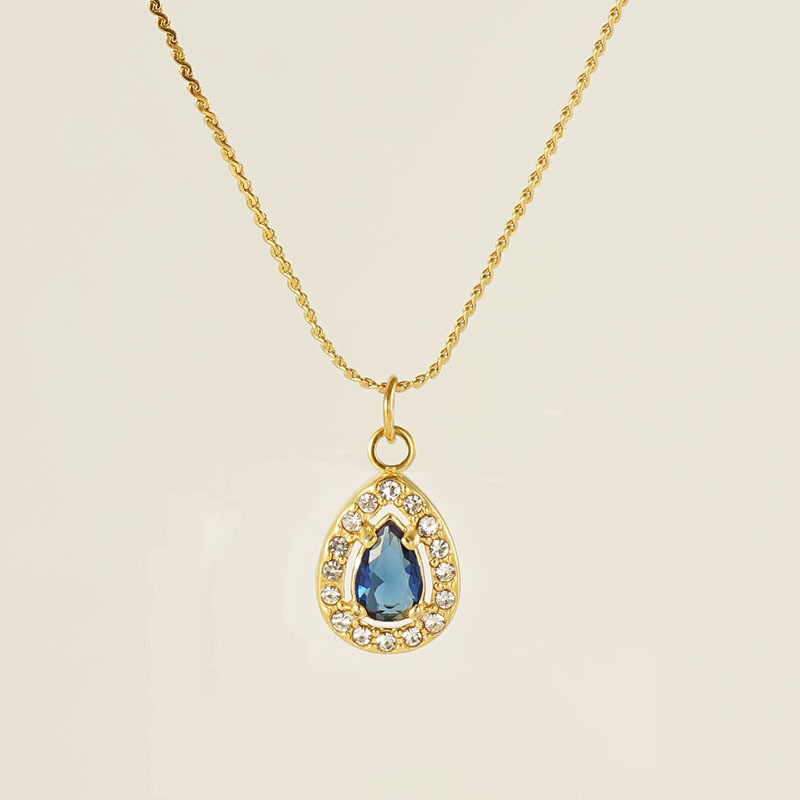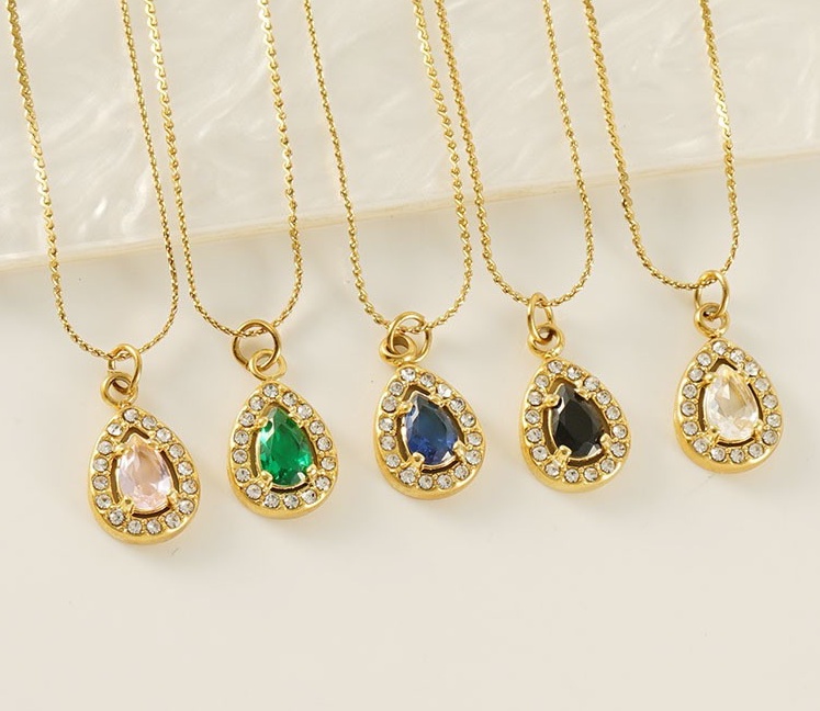 跨境欧美简约风镶锆石水滴形吊坠女18K镀金不锈钢项饰项链女,304不锈钢,18K真金 白锆