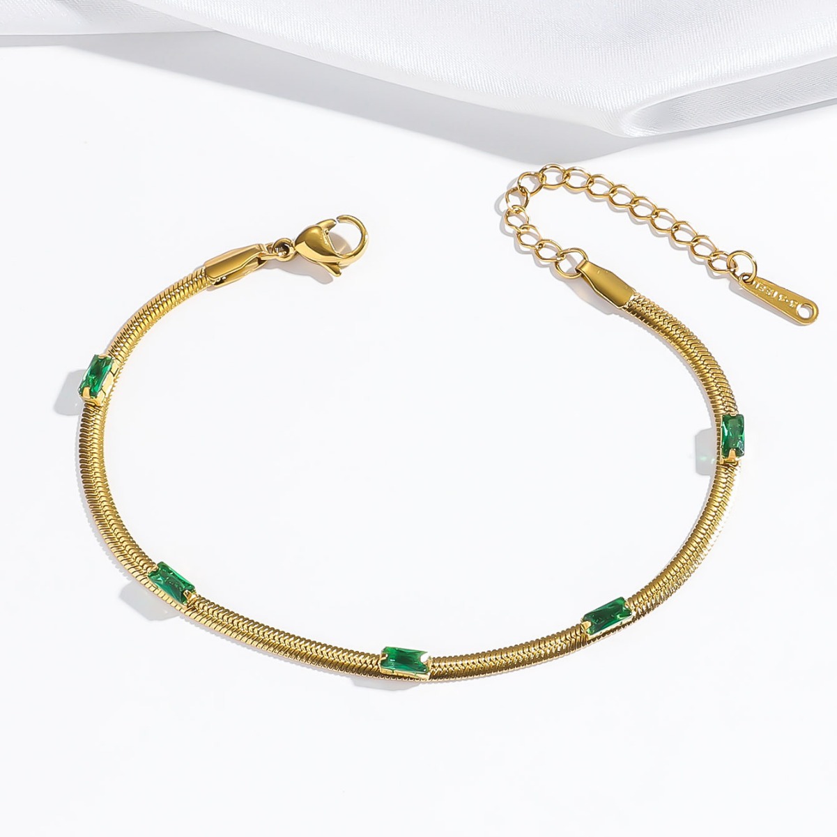 刀片链五颗绿钻手链,304不锈钢,18K真金