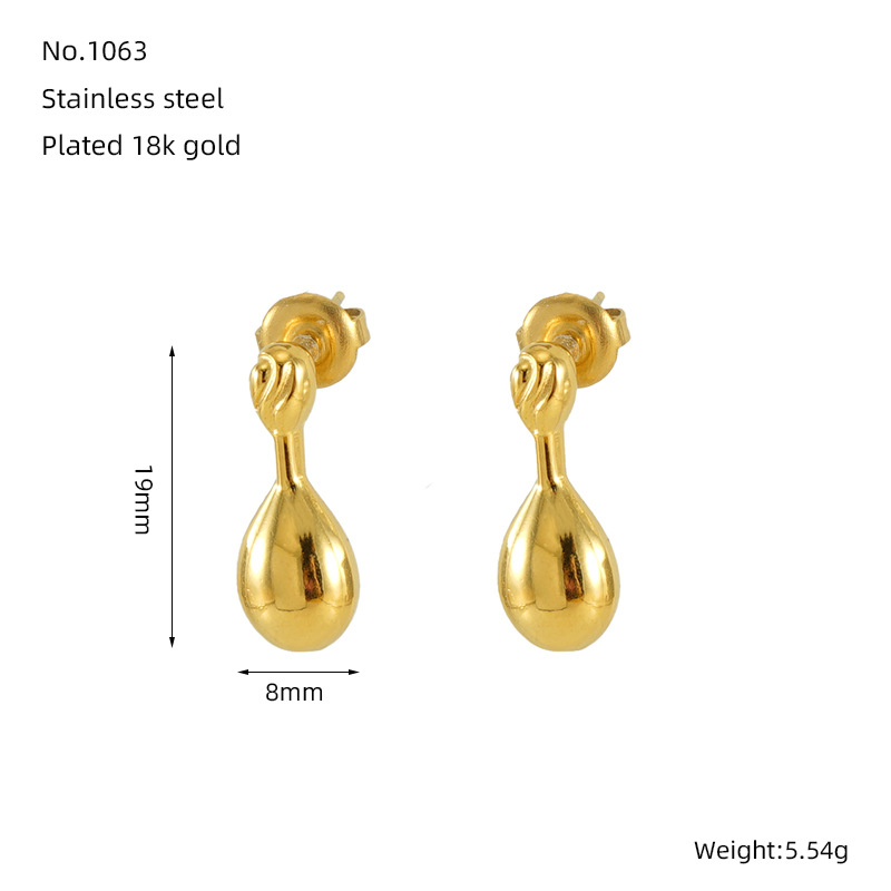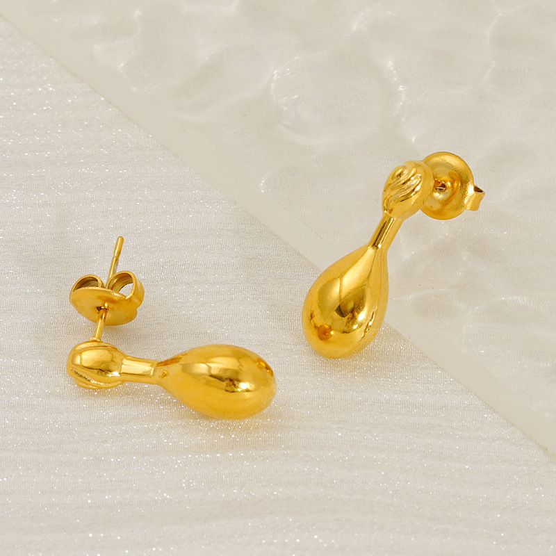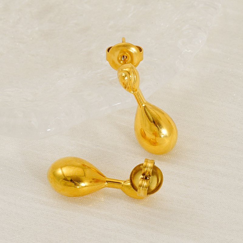 水滴耳钉,304不锈钢,18K真金