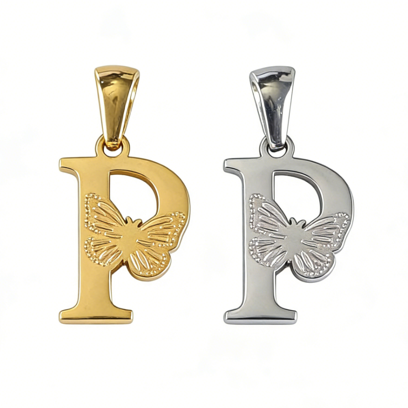 字母P吊坠,304不锈钢,钢色