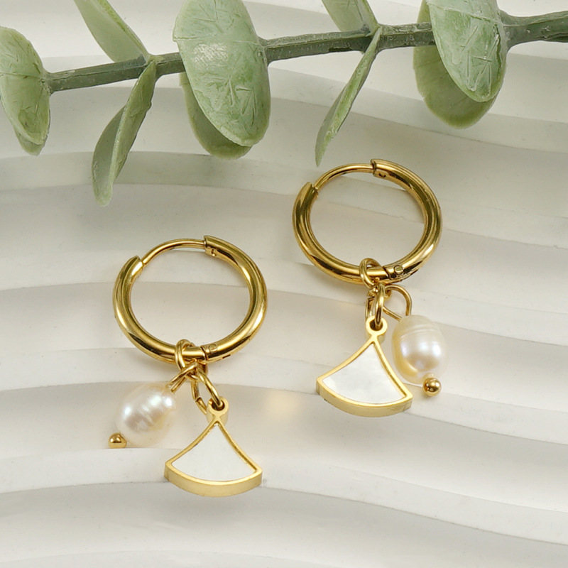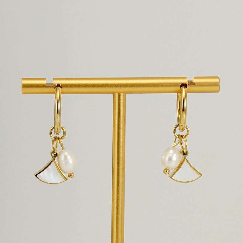 珍珠贝壳耳环,304不锈钢,18K真金