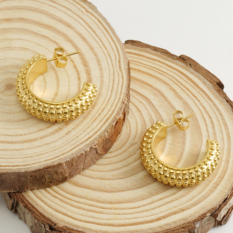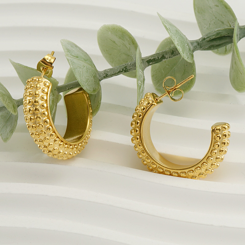 C形极简耳环,304不锈钢,18K真金
