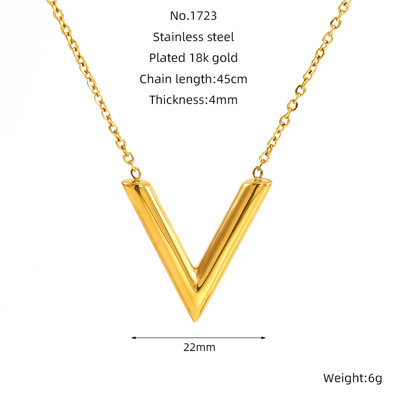 字母V项链,304不锈钢,18K真金
