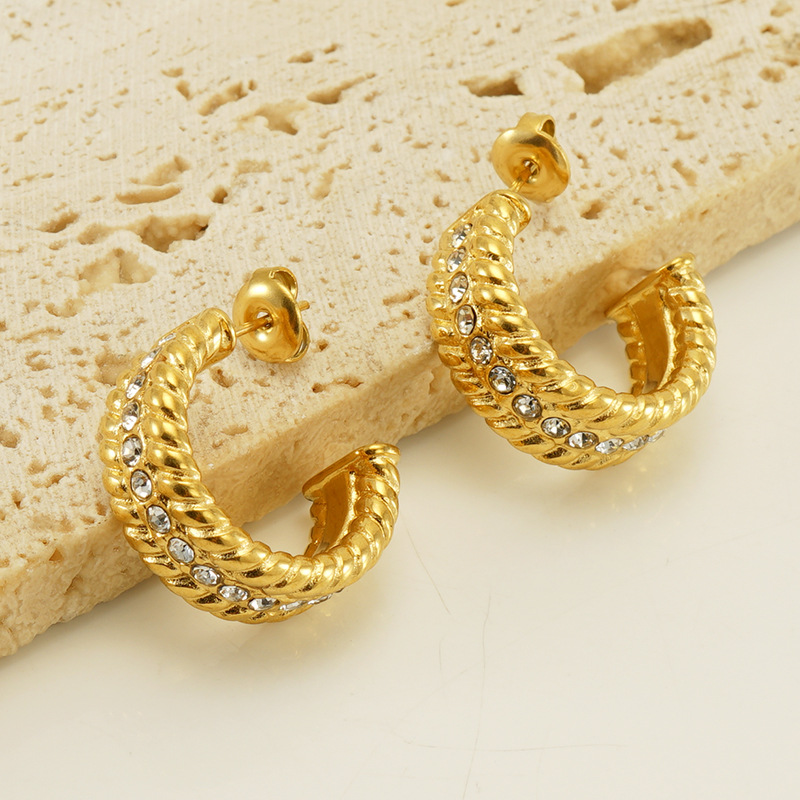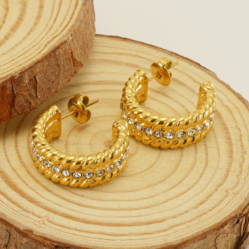 U形镶钻耳环,304不锈钢,18K真金 材质种类:不锈钢 | 商品编号:09562ZE798G