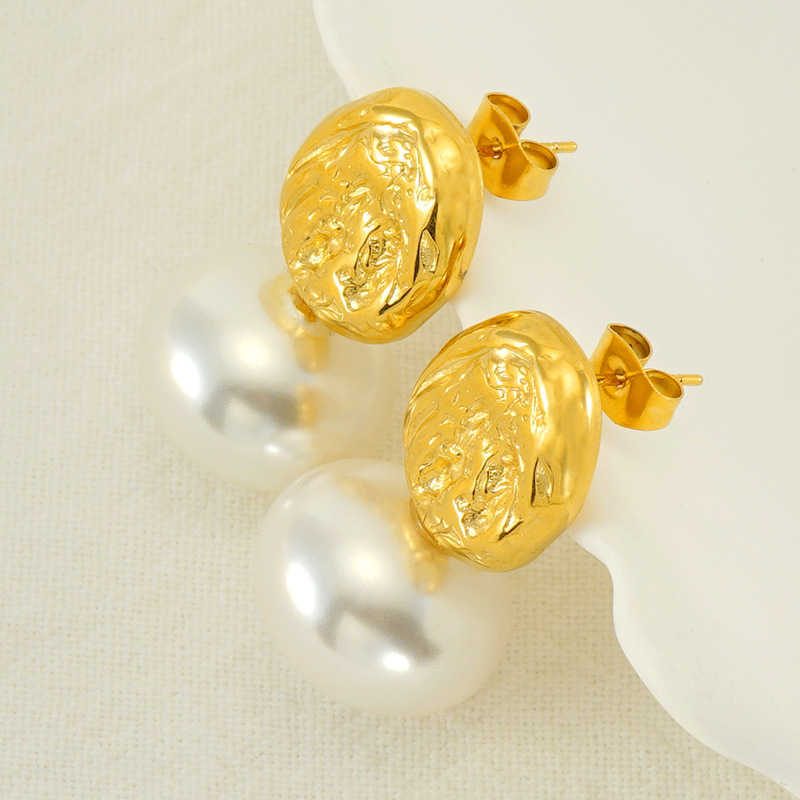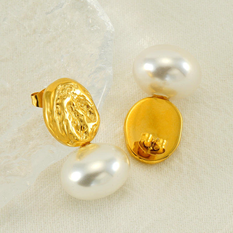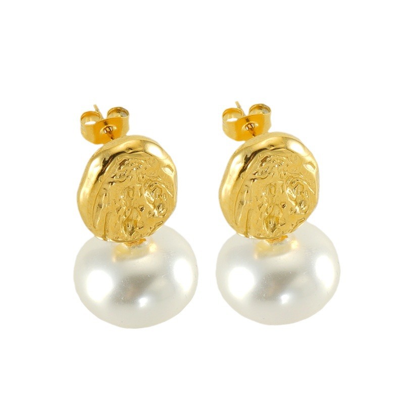 珍珠耳钉,304不锈钢,18K真金