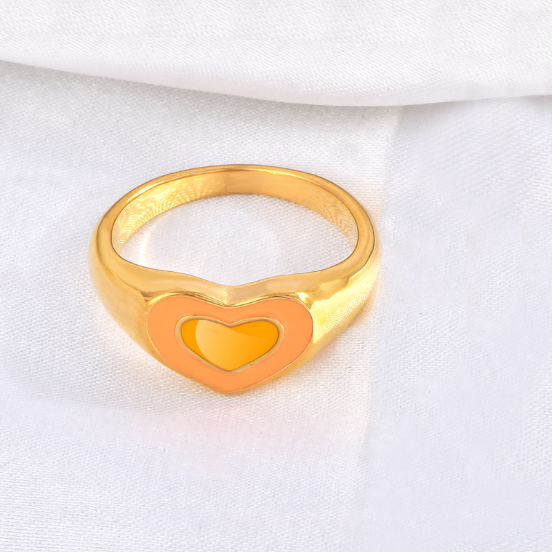 戒指,304不锈钢,18K真金 滴胶:橙色爱心 材质种类:不锈钢 | 商品编号:24665JZ249