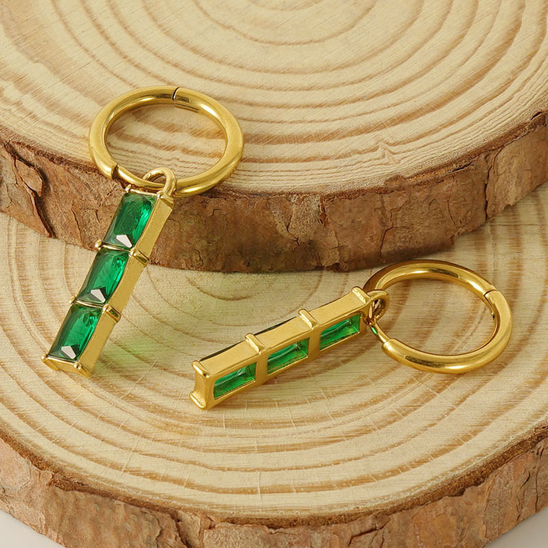 长方形绿锆石耳坠耳环,304不锈钢,18K真金