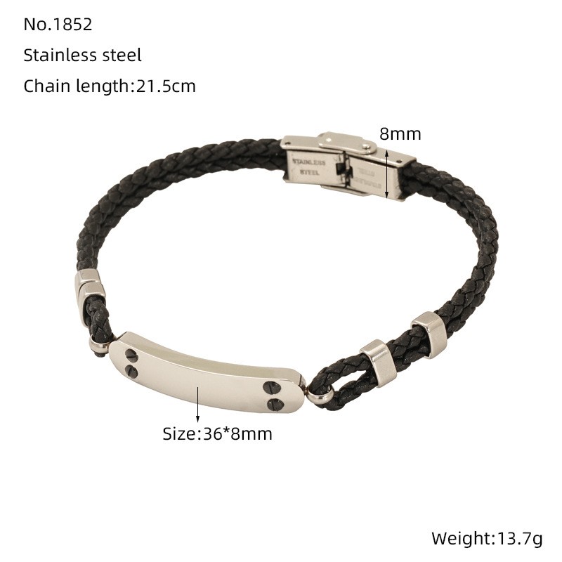 复古潮流皮绳时尚高级质感男女款手环手带个性十字架钛钢手链批发,304不锈钢,钢色