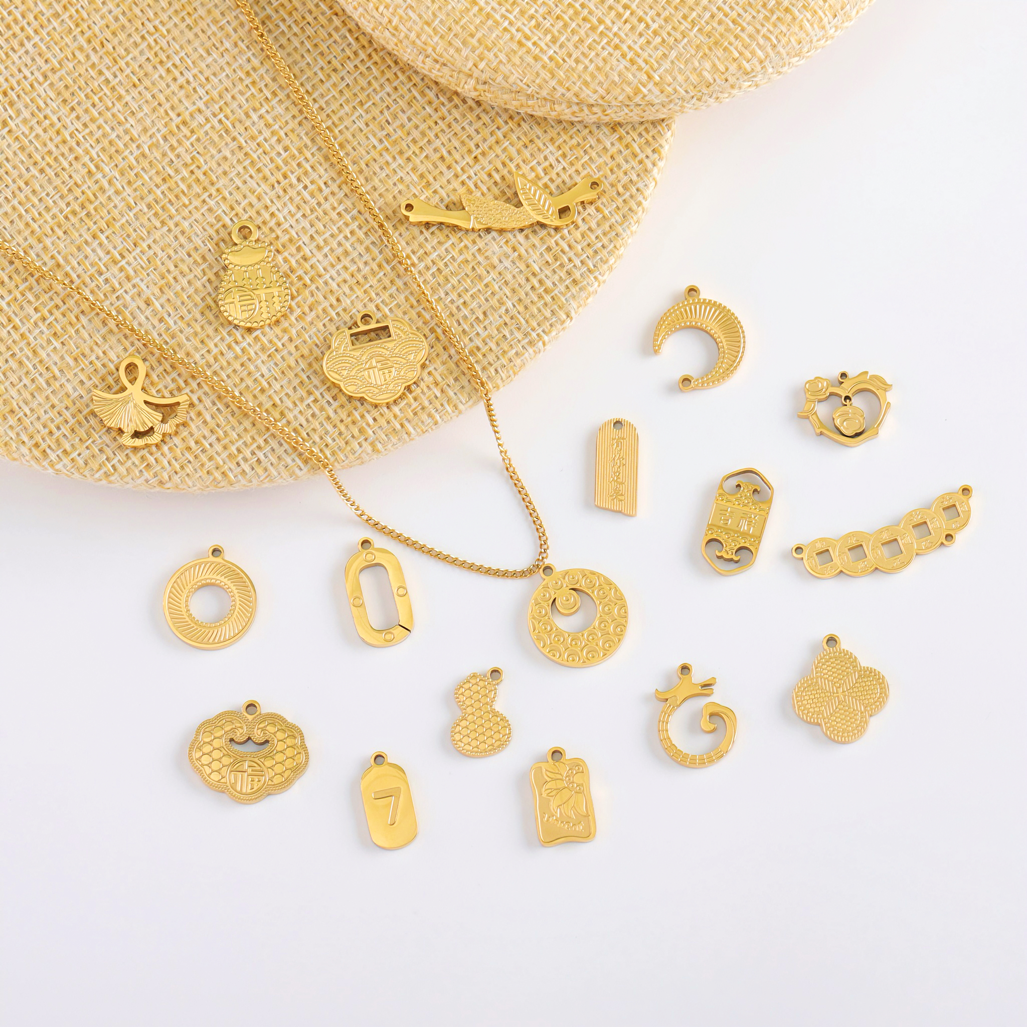 银杏叶吊坠,304不锈钢,18K真金