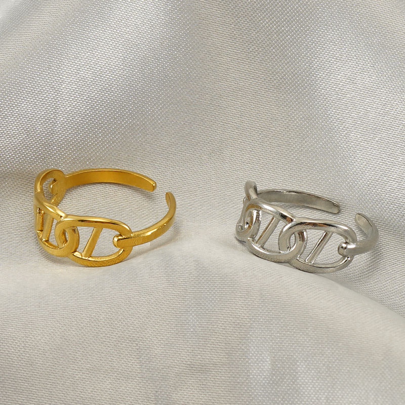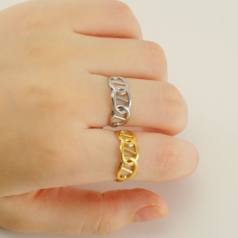 镂空18K金日字形不锈钢戒指,304不锈钢,18K真金