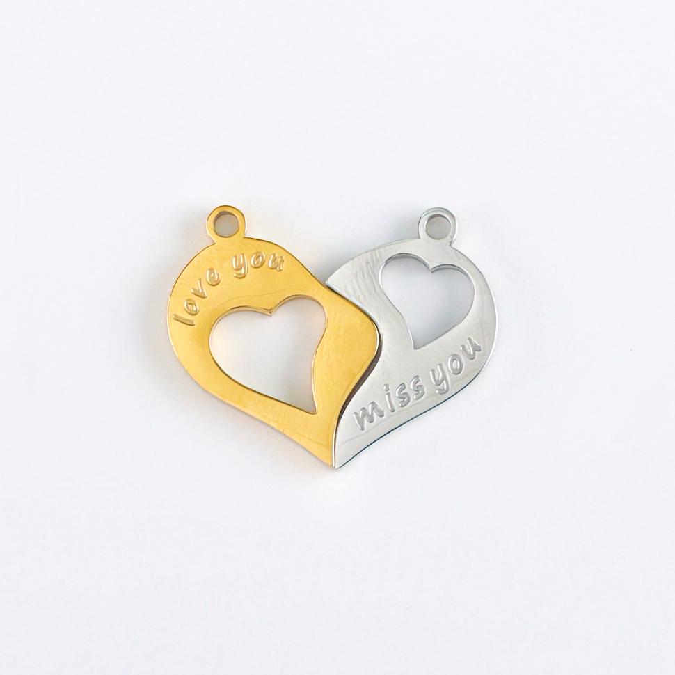 爱心吊坠,304不锈钢,钢色 右