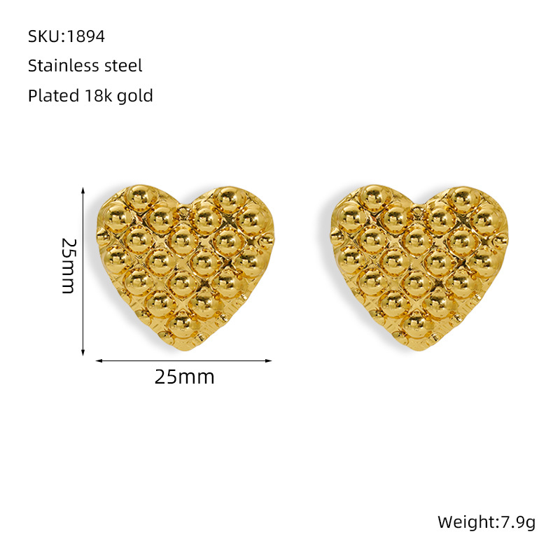 纹理爱心耳钉,304不锈钢,18K真金 材质种类:不锈钢 | 商品编号:09562ZE1894