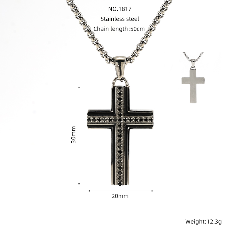 跨境热销时尚简约不锈钢十字架项链嘻哈个性钛钢饰品,304不锈钢,钢色+黑色 材质种类:不锈钢 | 商品编号:09562ZN1817M