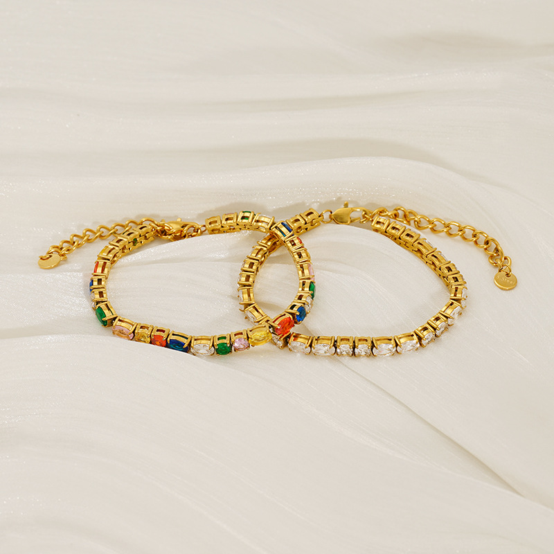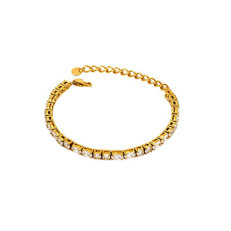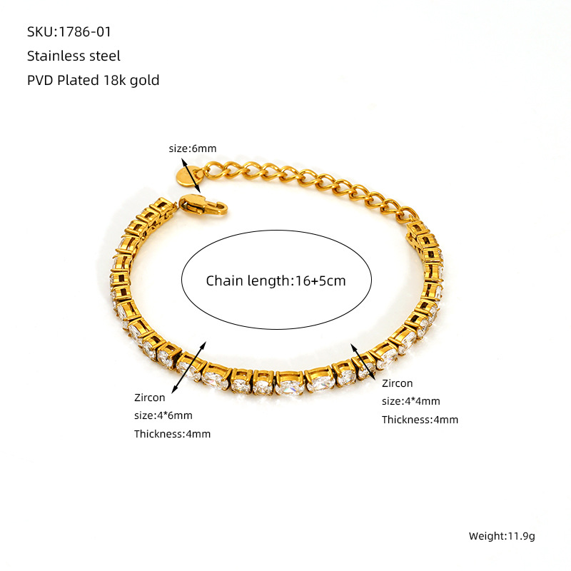 网球链手链,304不锈钢,18K真金 锆石:白锆