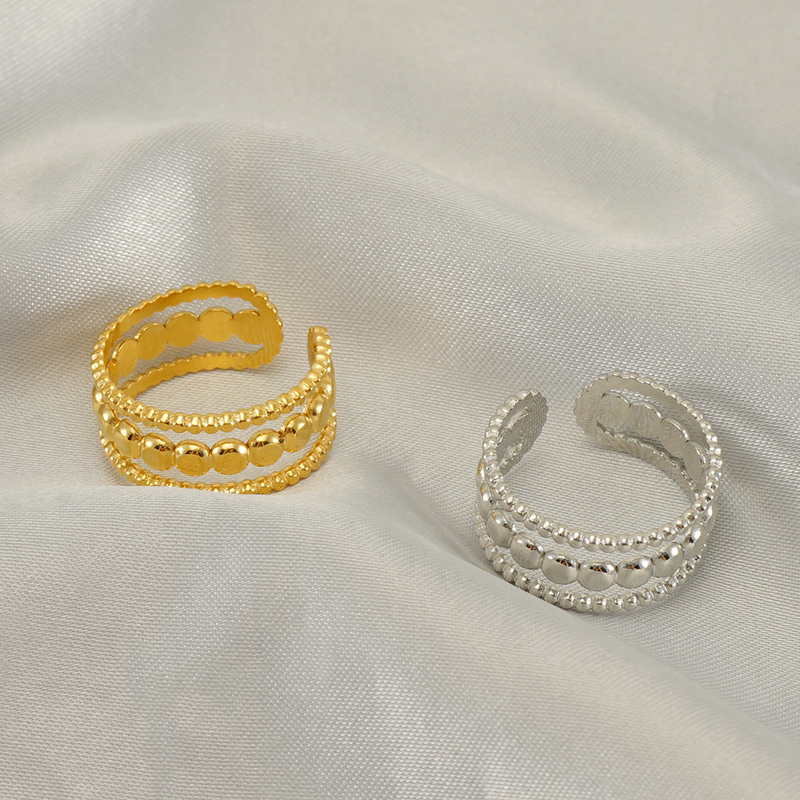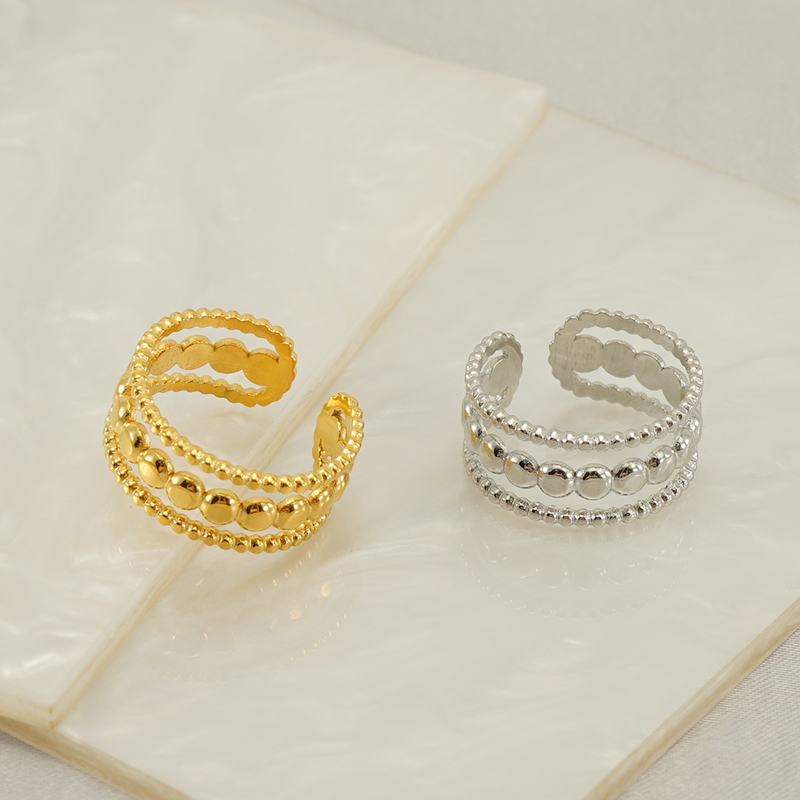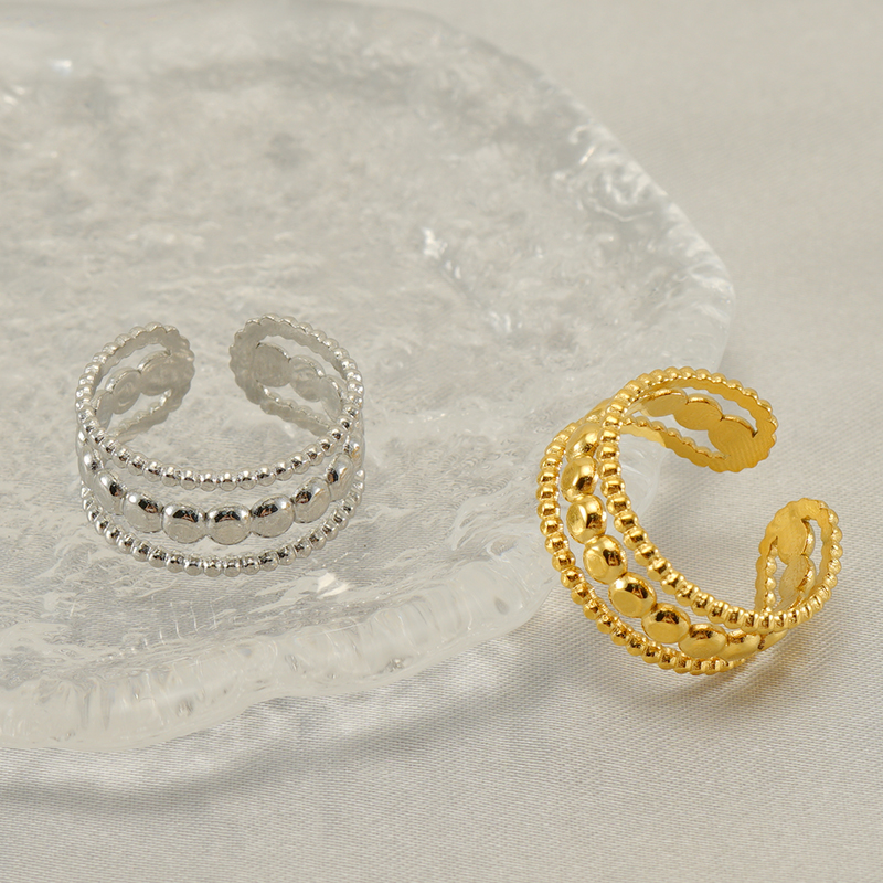 跨境欧美开口戒指钛钢可调节戒指女18K不锈钢简约四叶草活口指环,304不锈钢,钢色
