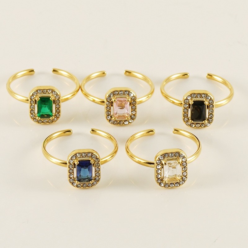 欧美不锈钢INS风锆石指环活口女戒18K可调节双层镶钻钛钢戒指女,304不锈钢,18K真金 白锆 材质种类:不锈钢 | 商品编号:09562ZR597G