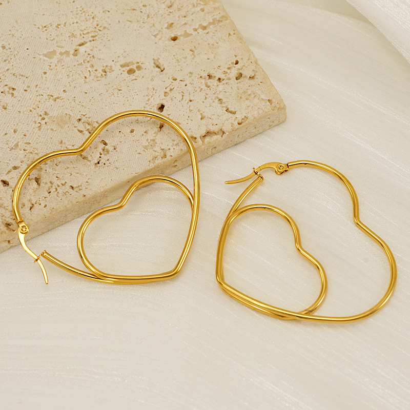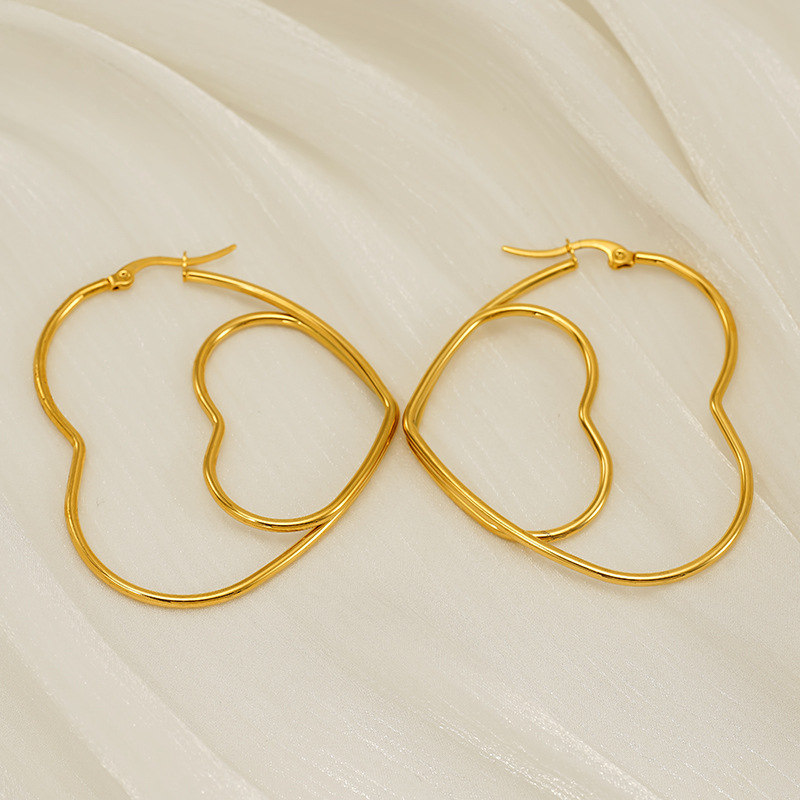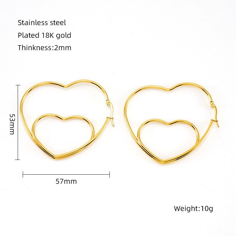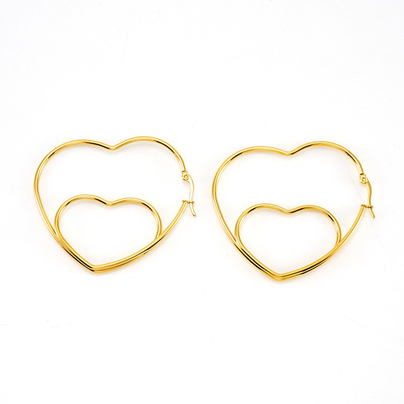 双层爱心缕空耳环,304不锈钢,18K真金