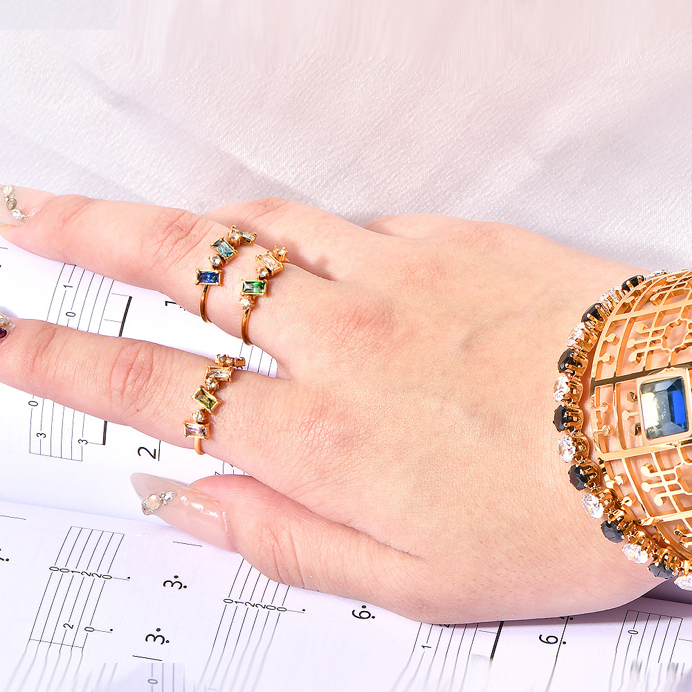 多色彩钻戒指,304不锈钢,18K真金 锆石:白锆、绿锆 材质种类:不锈钢 | 商品编号:24665JZ329
