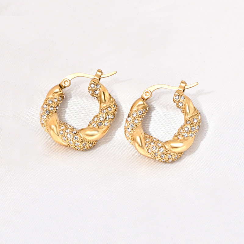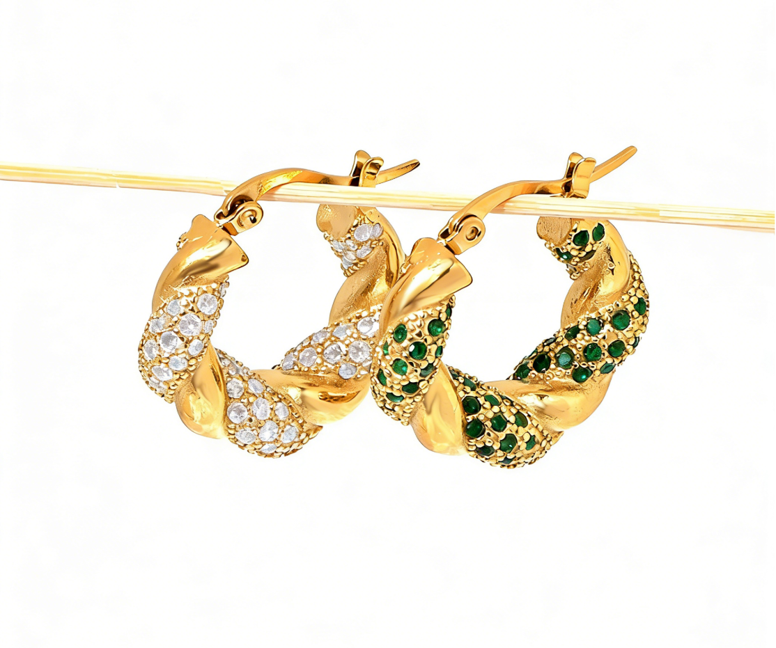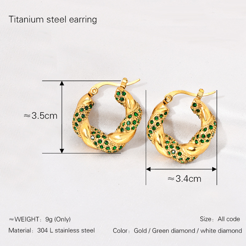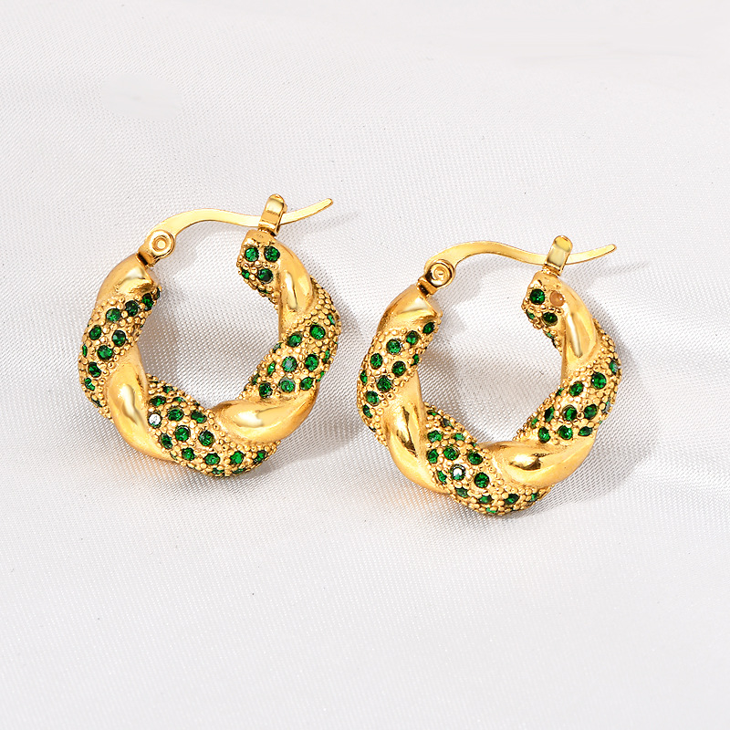 麻花耳环,304不锈钢,18K真金 水钻:深绿 材质种类:不锈钢 | 商品编号:24665EH175