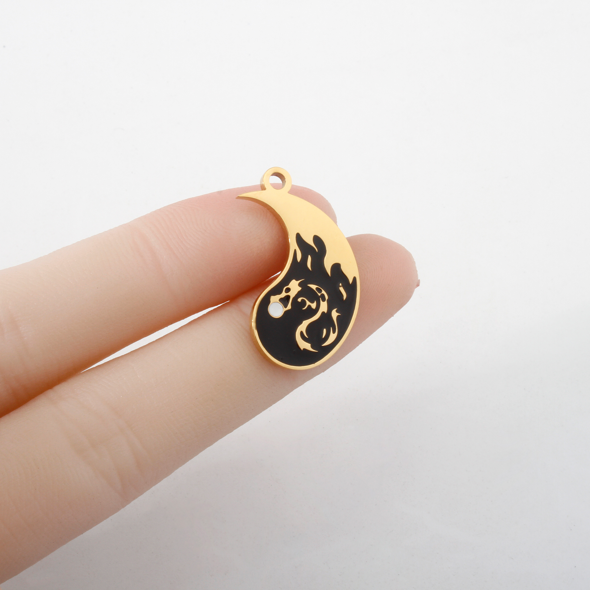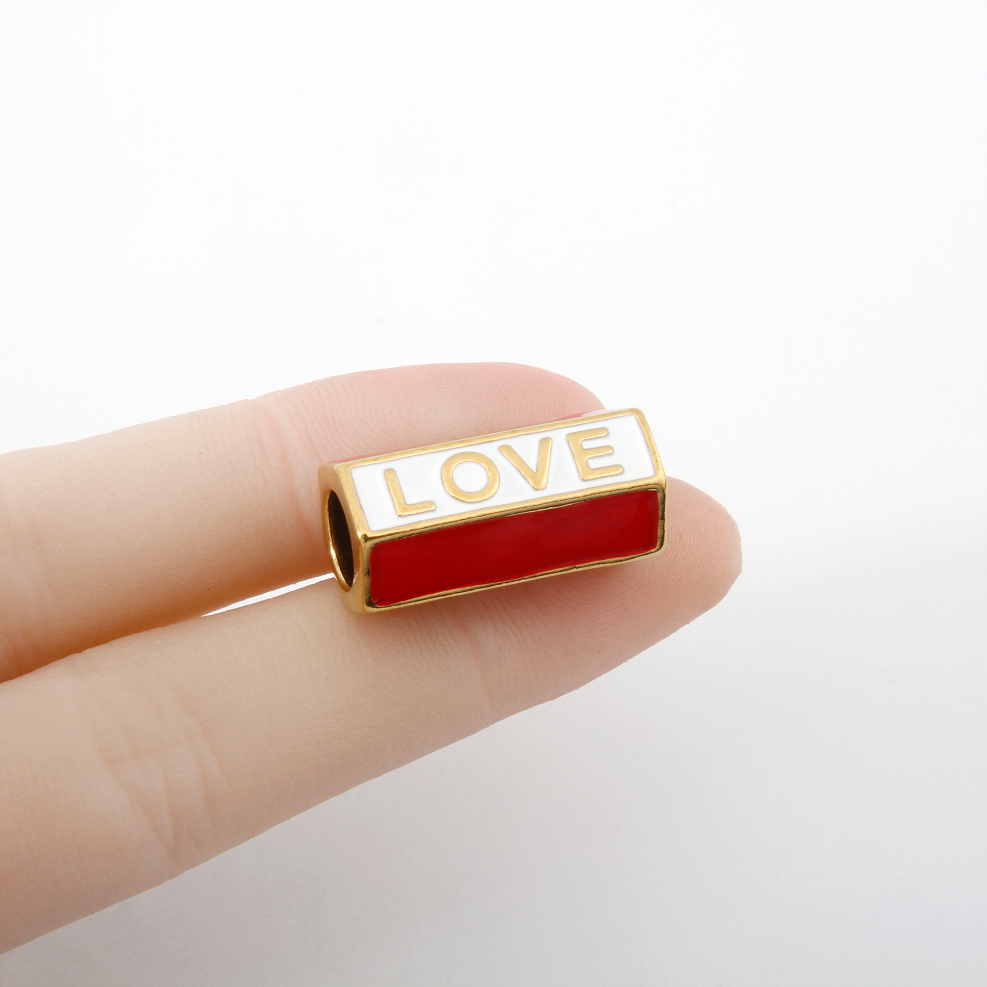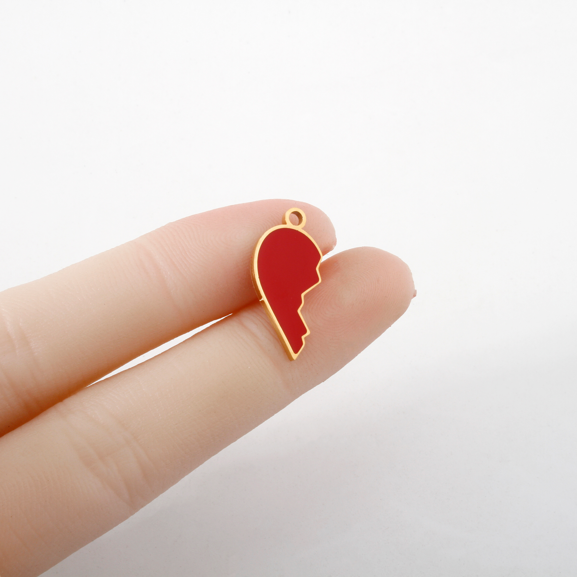 情侣爱心酒瓶吊坠,304不锈钢,18K真金+红色滴胶