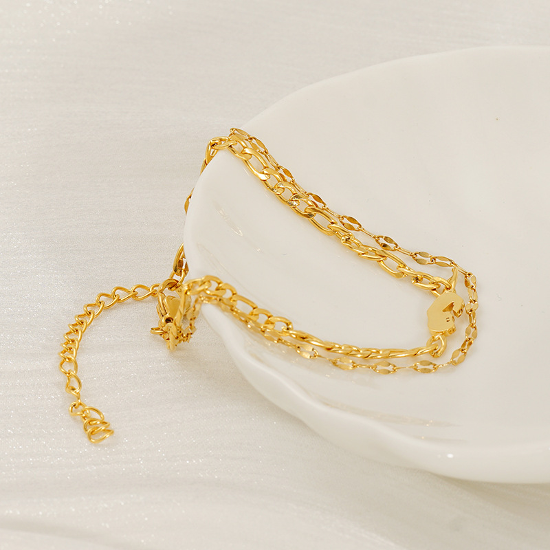 双层叠戴手链,304不锈钢,18K真金