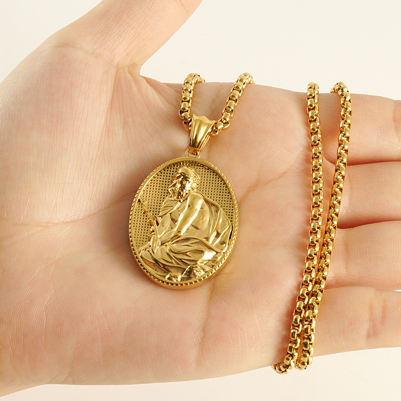 欧美个性男士项链不锈钢神父人像吊坠18K金色钛钢复古嘻哈项链男,304不锈钢,18K真金