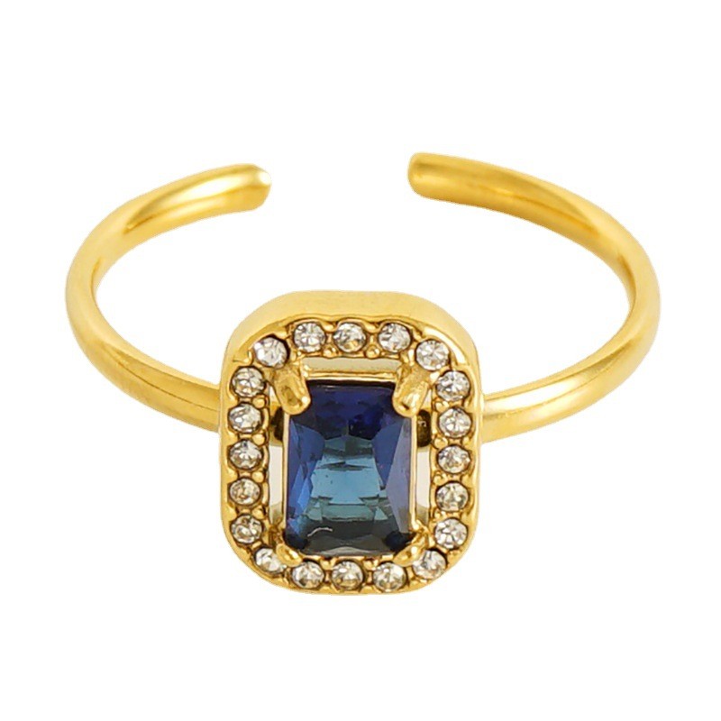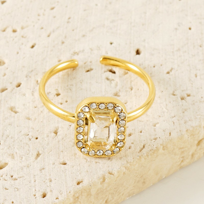 跨境欧美不锈钢方形可调节镶钻指环女高级感轻奢钛钢戒指尾戒批发,316不锈钢,18K真金 白锆 材质种类:不锈钢 | 商品编号:09562ZR592G