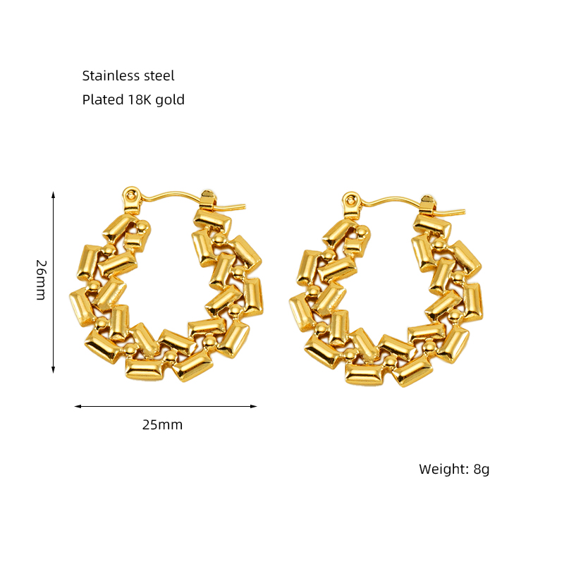 欧美跨境夸张钛钢耳扣女小众设计镂空耳圈18K不锈钢耳环耳饰批发,304不锈钢,18K真金 材质种类:不锈钢 | 商品编号:09562ZE1249G