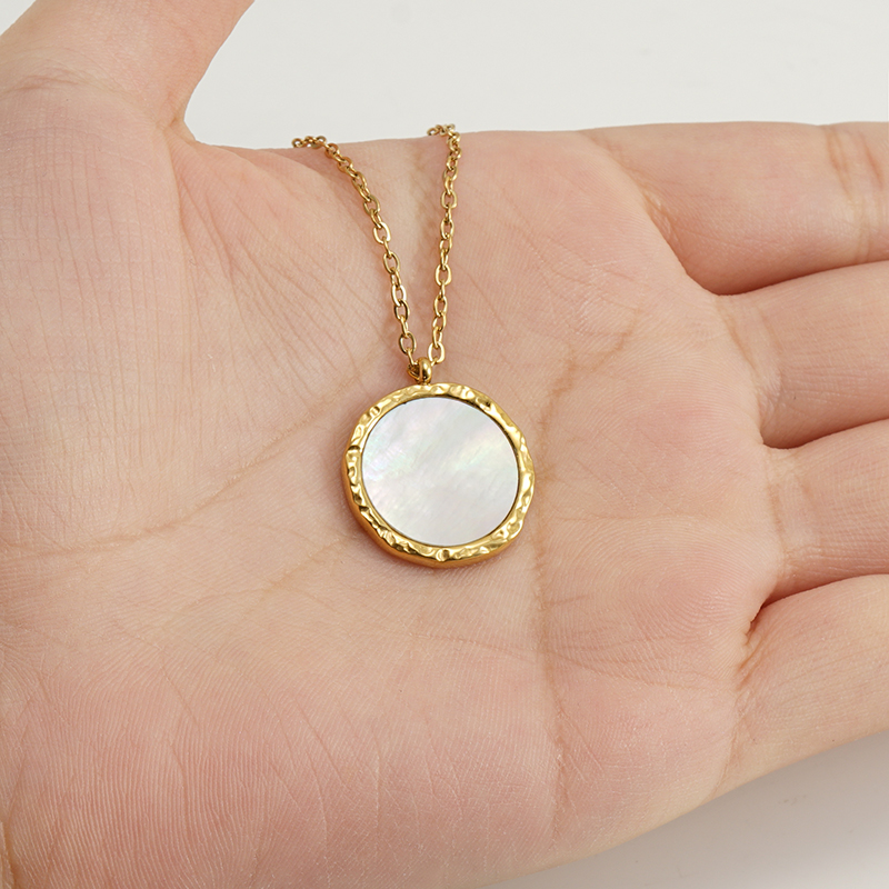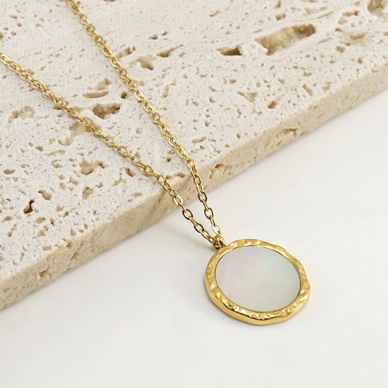 时尚简约风跨境不锈钢圆形贝壳项链轻奢风感ins风天然贝壳女,304不锈钢,18K真金 材质种类:不锈钢 | 商品编号:09562ZN231G
