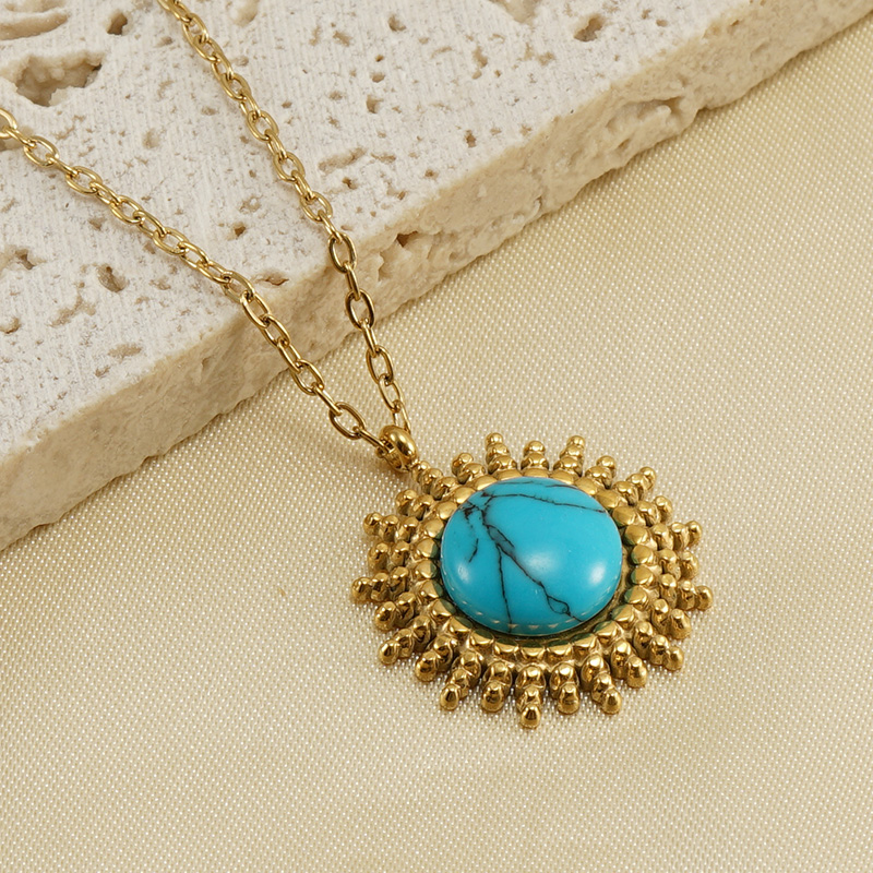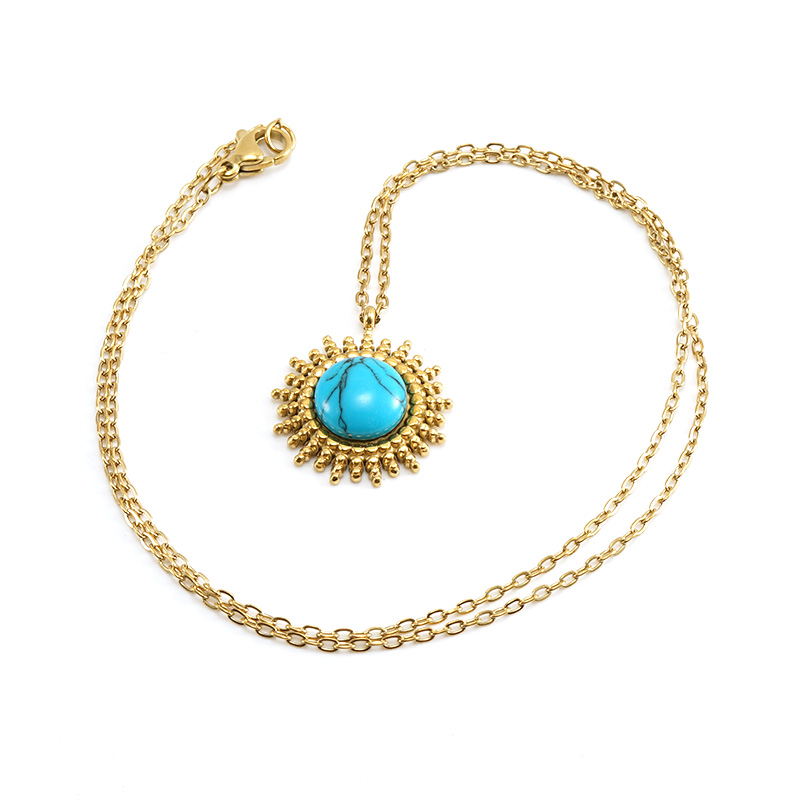 欧美跨境新品蓝松石圆形不锈钢吊坠女外贸简约ins风钛钢18K项链,304不锈钢,18K真金 材质种类:不锈钢 | 商品编号:09562ZN230G