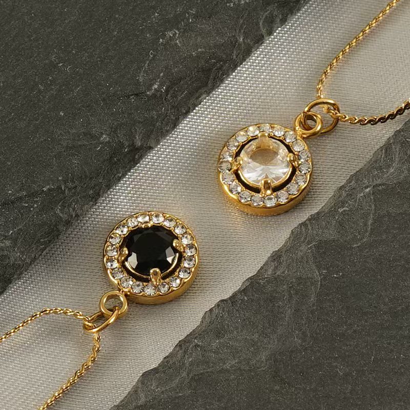 欧美ins风双层镶钻钛钢吊坠轻奢方形锆石项链女不锈钢S形锁骨链女,304不锈钢,18K真金 白锆 材质种类:不锈钢 | 商品编号:09562ZN677G